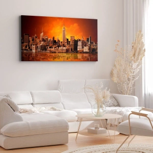 Bild auf Leinwand - Leinwandbild - Das Großstadtpanorama in Gelb und Bronze - 100x40 cm