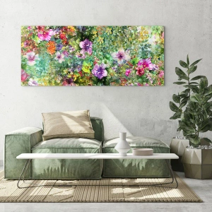 Glasbild - Bild auf glas - Bunte Blumen in einer künstlerischen Komposition - 70x50cm - In Blumen für das Verderben - Moderne Wanddekoration für Wohnzimmer und Schlafzimmer ARTTOR