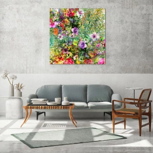 Dieses Glasbild mit bunten Blumen in künstlerischer Komposition begeistert durch seine Farbenpracht und die Vielfalt der floralen Motive. Jedes Detail, von zarten Blütenblättern bis hin zu intensiven Farbtönen, wurde mit außergewöhnlicher Präzision wiedergegeben, wodurch Harmonie und eine einzigartige visuelle Wirkung entstehen.