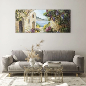 „Der Charme einer Küstenprovinz“ ist ein entzückendes Gemälde, das eine malerische Straße darstellt, die von Blumen und einem Steinbogen umgeben ist und direkt zu einem ruhigen See führt. Bunte Details und subtile Grün-, Lila- und Blautöne schaffen Harmonie und eine einzigartige Atmosphäre, die Erinnerungen an Frühlingsspaziergänge im provenzalischen Stil weckt. Dieses Werk ist eine ideale Wahl für Liebhaber der Schönheit der Natur und rustikaler Dekorationen.