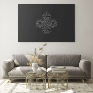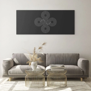 Glasbild - Bild auf glas - Minimalistisches weißes keltisches Symbol auf schwarzem Hintergrund - 70x50cm - Im keltischen Geist - Moderne Wanddekoration für Wohnzimmer und Schlafzimmer ARTTOR