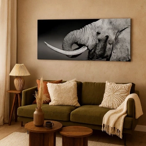 Diese Schwarz-Weiß-Komposition ist die perfekte Wahl für alle, die klassische Eleganz und Schlichtheit in der Inneneinrichtung schätzen. Der Elefant, als Symbol für Stärke und Weisheit, verleiht dem Interieur einen einzigartigen Charakter und Harmonie. Die monochrome Farbgebung macht das Gemälde vielseitig einsetzbar und passt zu zahlreichen Einrichtungsstilen.