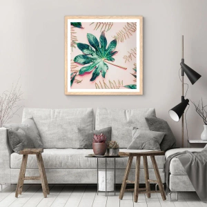 Poster in einem Rahmen aus heller Eiche - Eine Studie von Grün auf einem rosa Hintergrund - 30x40 cm