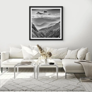 Poster in einem schwarzem Rahmen - Schwarz-weiße Berglandschaft mit Wolken über den Gipfeln - 70x50cm - Bis zum Horizont - Moderne Wanddekoration für Wohnzimmer und Schlafzimmer ARTTOR