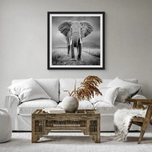 - Ein Schwarz-Weiß-Bild eines Elefanten in einer afrikanischen Landschaft. Dieses Poster eignet sich perfekt für naturinspirierte Innenräume. Das Set enthält einen schwarzen Rahmen, ist montagefertig und misst 50 x 70 cm.