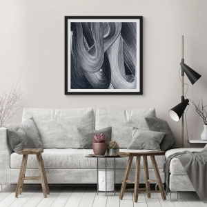 Poster in einem schwarzem Rahmen - Schwarz-Weiß-Abstraktion mit dynamischen Pinselstrichen. - 70x50cm - Die Fließfähigkeit der Realität - Moderne Wanddekoration für Wohnzimmer und Schlafzimmer ARTTOR