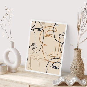 Poster - Minimalistische Zeichnungen von Gesichtern auf beigem Hintergrund - 50x70cm - Das Porträt wird multipliziert - Moderne Wanddekoration für Wohnzimmer und Schlafzimmer ARTTOR