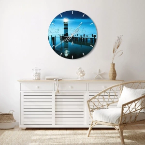 Wanduhr - Glasuhr - Der Leuchtturm am Pier beleuchtet in der Nacht - 30x30cm - Und du hast keine Angst vor der Dunkelheit - Moderne Wanddekoration für Wohnzimmer und Schlafzimmer ARTTOR