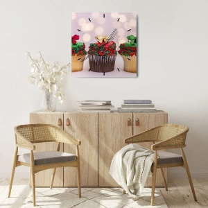 Wanduhr - Glasuhr - Weihnachts-Cupcakes mit bunten Streuseln und Schleifen - 30x30cm - Süßigkeiten bis zu der Schleife - Moderne Wanddekoration für Wohnzimmer und Schlafzimmer ARTTOR