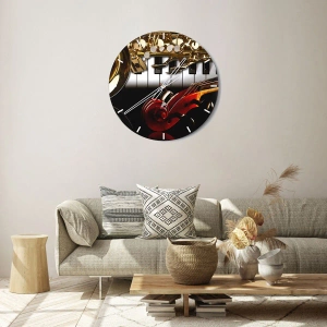 Wanduhr - Glasuhr - Ein goldenes Saxophon, Klaviertasten und eine rote Geige - 30x30cm - Blech, Holz und Elfenbein - Moderne Wanddekoration für Wohnzimmer und Schlafzimmer ARTTOR