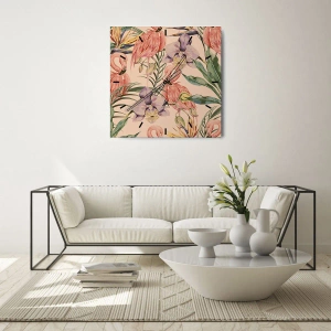 Wanduhr - Glasuhr - Flamingos und tropische Blumen auf hellem Hintergrund - 30x30cm - Rosa Ballett in Blumen - Moderne Wanddekoration für Wohnzimmer und Schlafzimmer ARTTOR