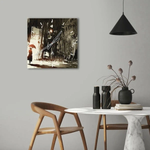 Wanduhr - Glasuhr - Eine rote Figur mit einem Regenschirm in einer regnerischen Szene - 30x30cm - Die Poesie des roten Regenschirms - Moderne Wanddekoration für Wohnzimmer und Schlafzimmer ARTTOR
