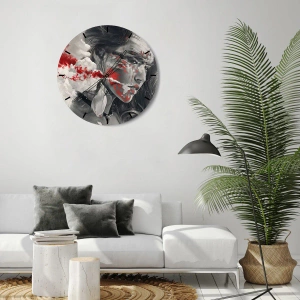 Wanduhr - Glasuhr - Künstlerisches Frauenportrait mit abstrakten roten Akzenten - 30x30cm - Im Dunst der Absurdität - Moderne Wanddekoration für Wohnzimmer und Schlafzimmer ARTTOR