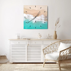 Wanduhr - Glasuhr - Ein Strand mit Sand und türkisfarbenem Wasser aus der Vogelperspektive aufgenommen - 30x30cm - Eine streichelnde Berührung - Moderne Wanddekoration für Wohnzimmer, Küche und Schlafzimmer ARTTOR