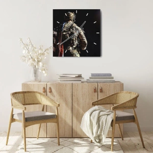 Wanduhr - Glasuhr - Ein Soldat in Uniform mit Rucksack und Flagge vor dunklem Hintergrund - 30x30cm - Darum - Moderne Wanddekoration für Wohnzimmer, Küche und Schlafzimmer ARTTOR