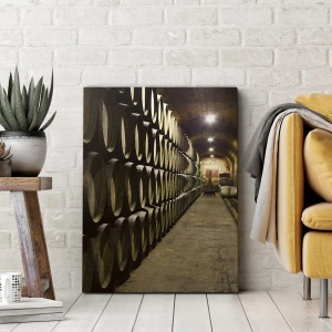 Bild auf Leinwand - Leinwandbild - Ein Keller mit in Reihen angeordneten hölzernen Weinfässern - 50x70cm - Es ist gut, sich hinzulegen - Moderne Wanddekoration für Wohnzimmer und Schlafzimmer ARTTOR