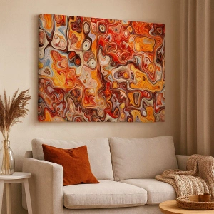 • Ein eindrucksvoller Leinwanddruck mit einer abstrakten Komposition in Rot-, Orange- und Gelbtönen. Perfekt für moderne Innenräume, verleiht er Energie und künstlerischen Ausdruck.