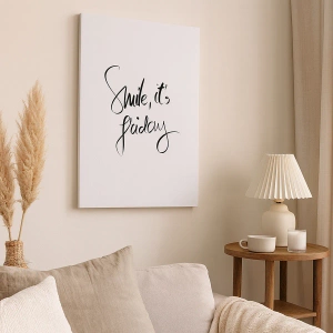 Bild auf Leinwand - Leinwandbild - Schwarz-weißer Schriftzug Smile, it's Friday - 50x70cm - Echte Freude - Moderne Wanddekoration für Wohnzimmer und Schlafzimmer ARTTOR