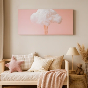 Bild auf Leinwand - Leinwandbild - Beine in einer Wolke auf rosa Hintergrund - 50x70cm - Süßes Versprechen - Moderne Wanddekoration für Wohnzimmer und Schlafzimmer ARTTOR