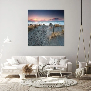 Bild auf Leinwand - Leinwandbild - Weg zum Strand bei Sonnenuntergang - 50x70cm - Du hast einen Regenbogen aus strahlendem Licht verschüttet ... - Moderne Wanddekoration für Wohnzimmer und Schlafzimmer ARTTOR