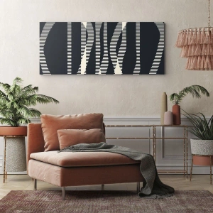 Die Leinwand wird über den Rahmen gespannt. Die Seiten und Kanten werden gedruckt, um das Bild fortzusetzen. Das Bild ist fertig zum Aufhängen an der Wand. Jedes Produkt hat einen am Rahmen befestigten Anhänger und ein Montageset (Schraube + Stift).