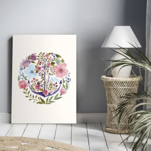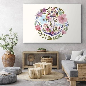 Bild auf Leinwand - Leinwandbild - Ein Anker, umgeben von Aquarellblumen auf hellem Hintergrund - 50x70cm - Guter Traum eines Seemanns - Moderne Wanddekoration für Wohnzimmer und Schlafzimmer ARTTOR