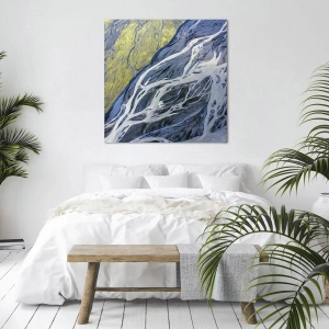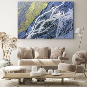 Bild auf Leinwand - Leinwandbild - Abstrakte Vogelperspektive auf mäandernde Flussbetten - 50x70cm - Felsmalereien der Natur - Moderne Wanddekoration für Wohnzimmer und Schlafzimmer ARTTOR