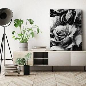 Bild auf Leinwand - Leinwandbild - Schwarze und weiße Rosen in einer eleganten Komposition - 50x70cm - Immer Königin - Moderne Wanddekoration für Wohnzimmer und Schlafzimmer ARTTOR