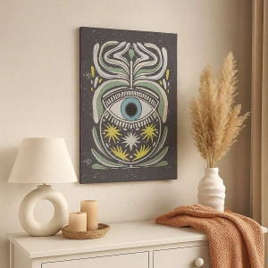 Wir verwenden ökologische, geruchslose und langlebige Tinten mit tiefer Farbsättigung. Durch moderne Drucktechnik wird der Druck präzise platziert, wobei die sichtbare Struktur der Leinwand erhalten bleibt