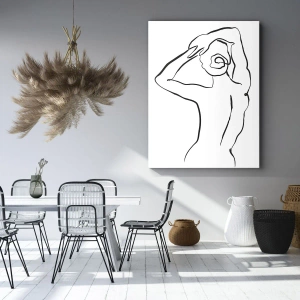 Die Leinwand wird über den Rahmen gespannt. Die Seiten und Kanten werden gedruckt, um das Bild fortzusetzen. Das Bild ist fertig zum Aufhängen an der Wand. Jedes Produkt hat einen am Rahmen befestigten Anhänger und ein Montageset (Schraube + Stift).