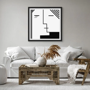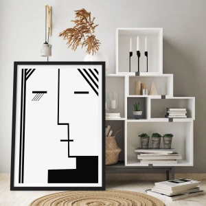 Poster in einem schwarzem Rahmen - Ein minimalistisches, abstraktes Gesicht im Schwarz-Weiß-Stil. - 50x70cm - Einfach ein Kuss - Moderne Wanddekoration für Wohnzimmer und Schlafzimmer ARTTOR