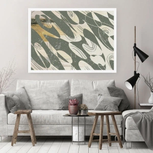 Poster - Dynamische Formen in Grün- und Goldtönen - 100x70cm - Rhythmische Abstraktion - Moderne Wanddekoration für Wohnzimmer und Schlafzimmer ARTTOR