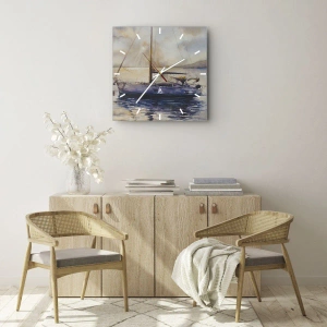 Wanduhr - Glasuhr - Eine Yacht auf dem Wasser bei Sonnenuntergang im Aquarellstil - 30x30cm - Abend in der Bucht - Moderne Wanddekoration für Wohnzimmer, Küche und Schlafzimmer ARTTOR