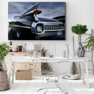 - Dieses Gemälde zeigt ein klassisches Retro-Auto mit glänzendem Chrom und markanten Heckflossen. Es ist die perfekte Dekoration für Autoliebhaber und Liebhaber des Vintage-Stils.