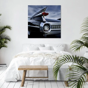 Bild auf Leinwand - Leinwandbild - Ein klassisches Retro-Auto mit glänzendem Chrom und Flossen - 70x50cm - Deshalb ist es schön! - Moderne Wanddekoration für Wohnzimmer und Schlafzimmer ARTTOR