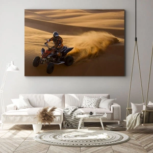 Bild auf Leinwand - Leinwandbild - Ein Motorradfahrer auf einem Quad rast über die Sanddünen der Wüste - 70x50cm - Auf den Sandwellen - Moderne Wanddekoration für Wohnzimmer und Schlafzimmer ARTTOR