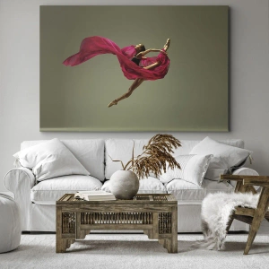 Der rosa Stoff kontrastiert mit dem neutralen Hintergrund, verleiht der Komposition Tiefe und hebt die Silhouette der Tänzerin hervor. Das Gemälde strahlt Dynamik und Energie aus und bewahrt gleichzeitig Subtilität und Anmut. Dieser Stil passt perfekt in moderne, minimalistische und klassische Räume und verleiht dem Interieur eine inspirierende Atmosphäre.