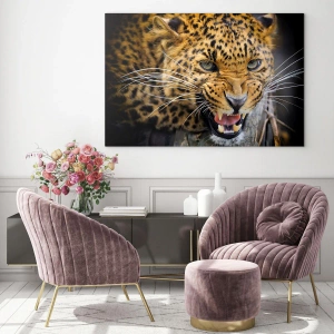 Glasbild - Bild auf glas - Nahaufnahme eines aggressiven Leoparden mit klaren Details - 50x70cm - Bleib zurück, ich warne dich! - Moderne Wanddekoration für Wohnzimmer und Schlafzimmer ARTTOR