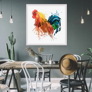 • Hahn, Grafik, Zucht, Tiere, Für das Büro, für das Arbeitszimmer, für das Esszimmer, für den Flur, für das Wohnzimmer, für das Schlafzimmer, Weiß, Blau, Orange, Vertikal