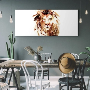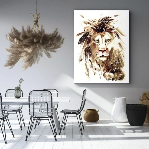 Bild auf Leinwand - Leinwandbild - Aquarellporträt eines Löwen mit intensiven Details - 70x50cm - Stärke und Würde - Moderne Wanddekoration für Wohnzimmer und Schlafzimmer ARTTOR