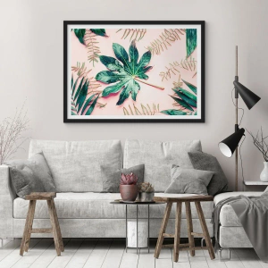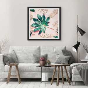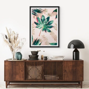 Poster in einem schwarzem Rahmen - Eine Studie von Grün auf einem rosa Hintergrund - 30x40 cm