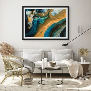 Poster in einem schwarzem Rahmen - Blau - Gelb - gegenseitige Beeinflussung - 30x40 cm