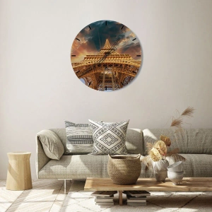 Wanduhr - Glasuhr - Perspektive des Eiffelturms bei Sonnenuntergang - 30x30cm - Wie die Menschheit den Himmel erreichte - Moderne Wanddekoration für Wohnzimmer, Küche und Schlafzimmer ARTTOR