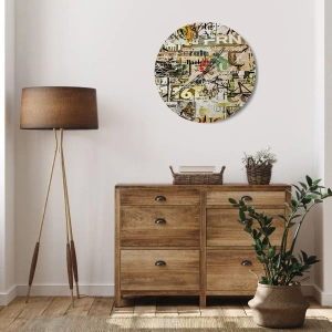 Wanduhr - Glasuhr - Eine Collage aus Zeitungs- und Plakatfragmenten im künstlerischen Stil. - 30x30cm - Ach, es passiert... - Moderne Wanddekoration für Wohnzimmer und Schlafzimmer ARTTOR