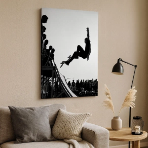 • Skatepark, Skateboard, Sport, Schwarz und Weiß, Menschen, Sport und Hobbys, Für das Esszimmer, für das Jugendzimmer, für den Flur, für das Wohnzimmer, für das Schlafzimmer, Schwarz, Grau, Schwarz und Weiß, Vertikal