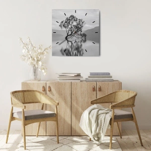 Die Uhr besteht aus 4 mm dickem Sicherheitsglas Glas. Die Herstellungstechnologie der Uhr entspricht der Sicherheitsklasse 2B2 gemäß der Norm PN-EN 12600: 2004, die Stoßfestigkeit garantiert. Die Uhr auf dem Glas ist bereit zu hängen - es hat einen Metallanhänger, einen Anhänger auf der Rückseite der Uhr und einen Schaumstoffabstand, der einen gleichmäßigen Abstand zwischen der Uhr und der Wand reguliert. Die Uhr hat einen geräuschlosen Schwimmmechanismus, der von einer 1,5-V-Batterie betrieben wird - AA-Batterie inbegriffen).