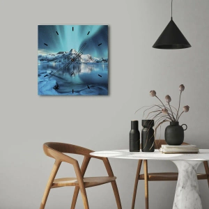 Wanduhr - Glasuhr - Aurora Borealis über schneebedeckten Bergen und einem zugefrorenen See - 30x30cm - Lichtnacht - Moderne Wanddekoration für Wohnzimmer, Küche und Schlafzimmer ARTTOR