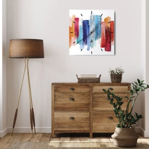 Das abstrakte Motiv voller intensiver Farben und geometrischer Formen fängt den Geist modernen Designs perfekt ein. Die Uhr passt zu verschiedenen Einrichtungsstilen, insbesondere zu solchen, die Wert auf Kreativität und Ausdruckskraft legen. Sie eignet sich perfekt für Wohnzimmer, Schlafzimmer oder Büro und verleiht dem Raum einen einzigartigen Charakter.