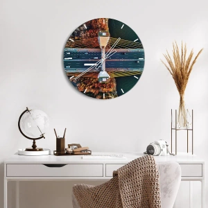 Wanduhr - Glasuhr - Luftaufnahme der Brücke über den Fluss und der Herbstlandschaft - 30x30cm - Jenseits der Gewässer, jenseits der Wälder - Moderne Wanddekoration für Wohnzimmer und Schlafzimmer ARTTOR