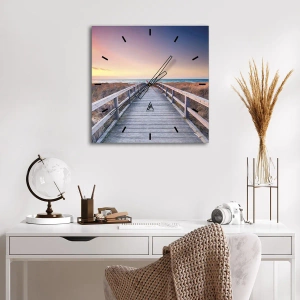 Wanduhr - Glasuhr - Holzweg, der bei Sonnenuntergang zum Meer führt - 30x30cm - Baltische Abend-Aurora - Moderne Wanddekoration für Wohnzimmer, Küche und Schlafzimmer ARTTOR